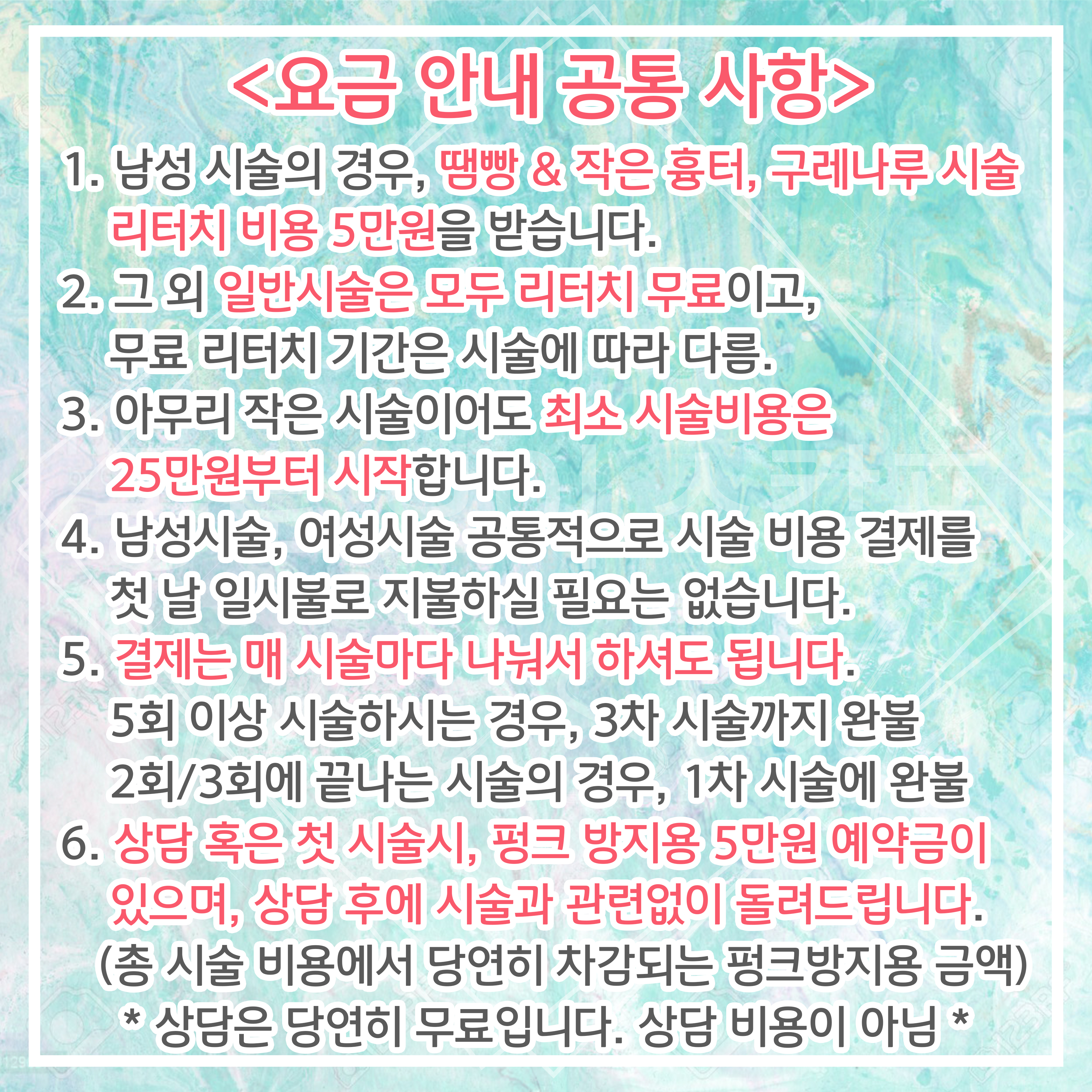 예전에도 올렸지만, 그림을 추가해서 시술금액을 업데이트 합니다.